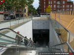 Gir de 180 graus dels accessos a la parada de metro, amb escala fixa i