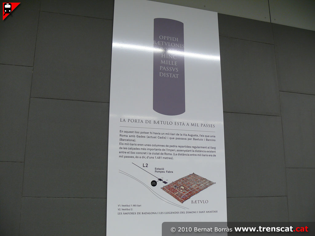 Suport per a la senyalèctica de l'estació de Pompeu Fabra (juliol 2010) |