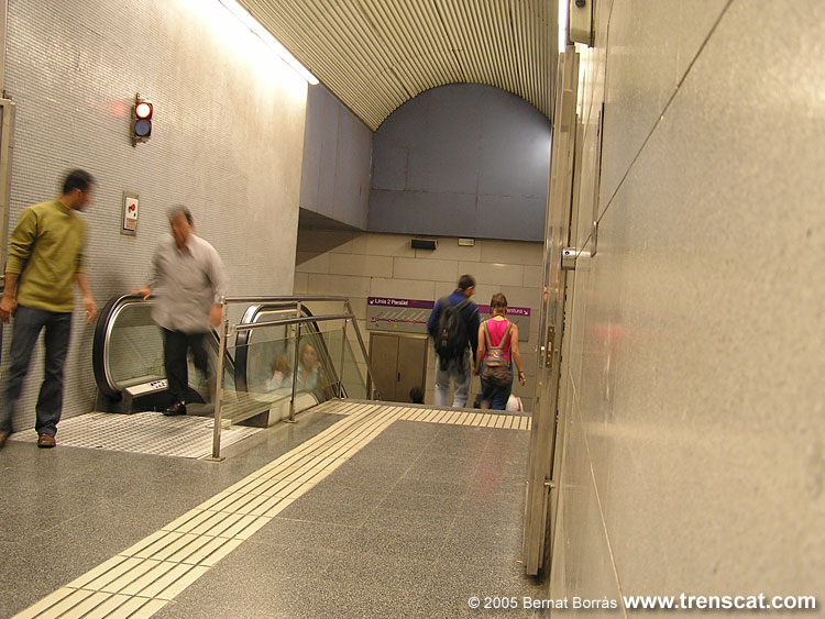 directe entre el centre de l'andana direcció Paral·lel i el vestíbul est