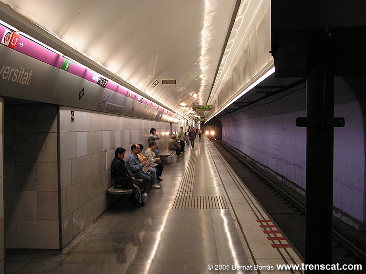 de l'estació Universitat de la L2, amb el nivell de vies a baix de tot (maig 2005)