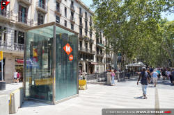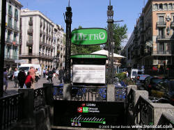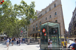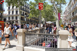 Boca d'entrada al metro Liceu des del passeig central de la Rambla