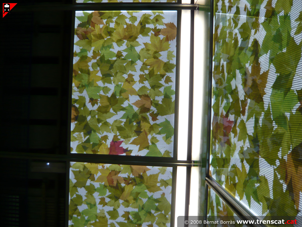 Detall dels plafons de vidre amb les fulles de plataner (juliol 2008) |