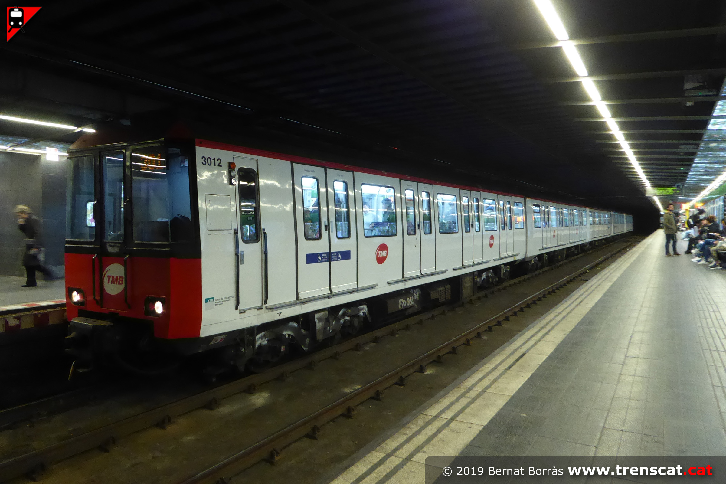 Unitat 3012 fent parada a l'estació de Liceu (novembre 2019) |