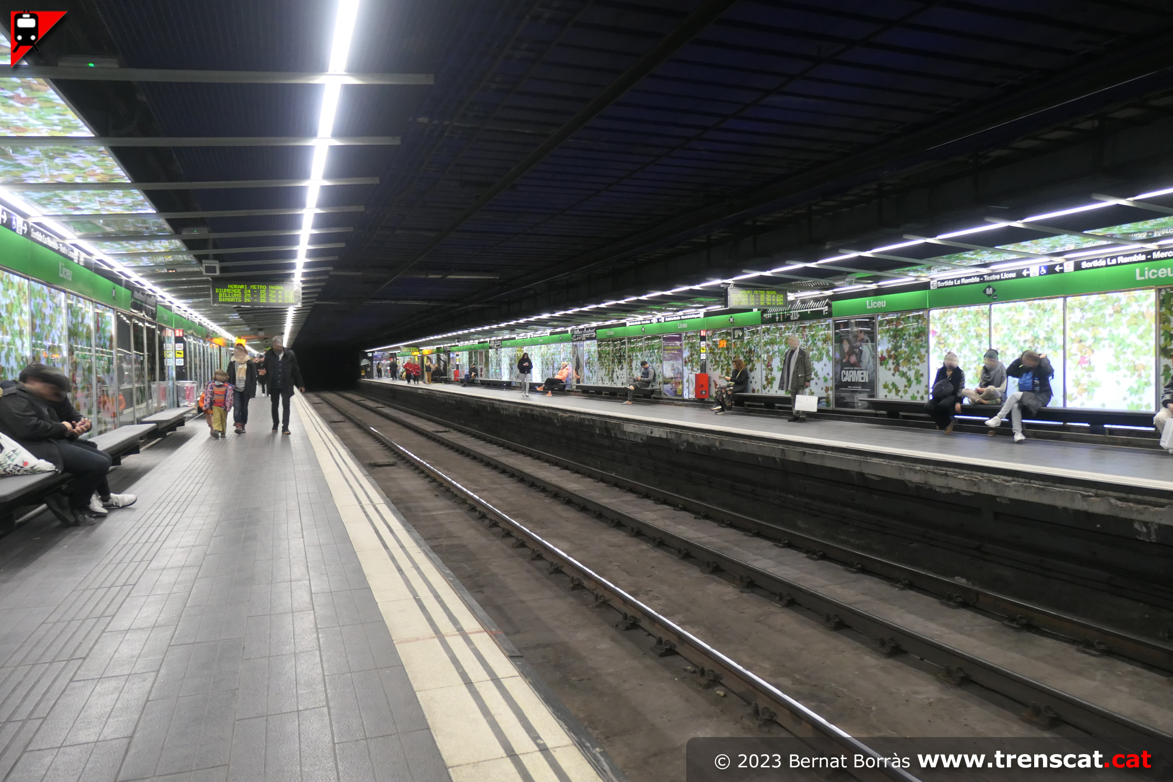 Vista general de les vies i andanes de Liceu (desembre 2023) |