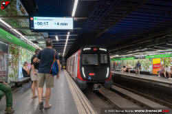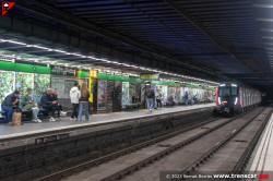 Tren sèrie 7000 baixant pel subsol de la Rambla cap a Liceu (juliol 2025) |
