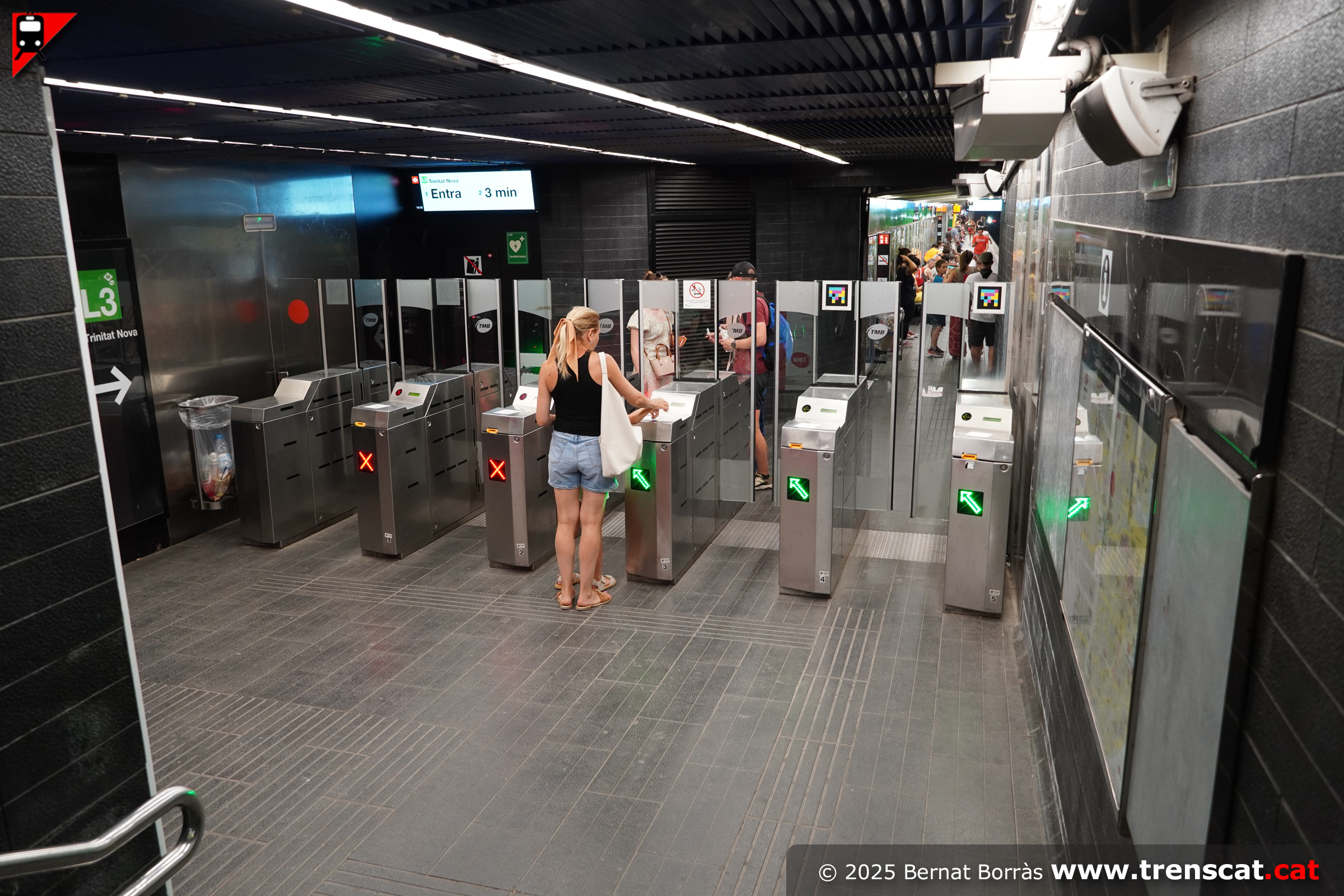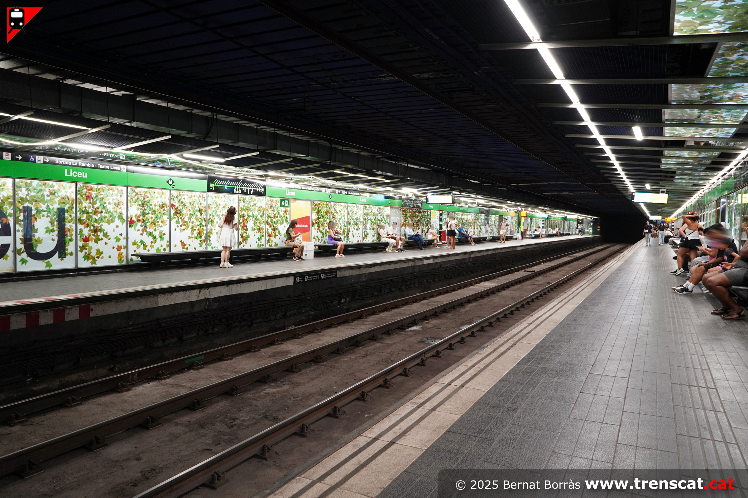 Vista general de l'estació de Liceu des del costat muntanya (juliol 2025) |
