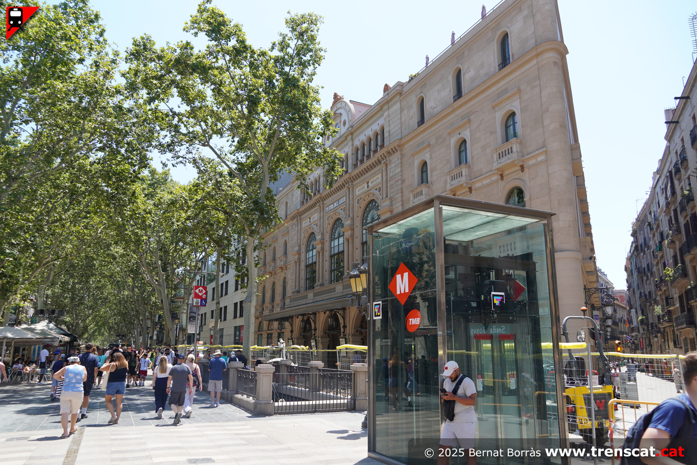 Ascensor de la Rambla a l'andana sentit Trinitat Nova (juliol 2025) |