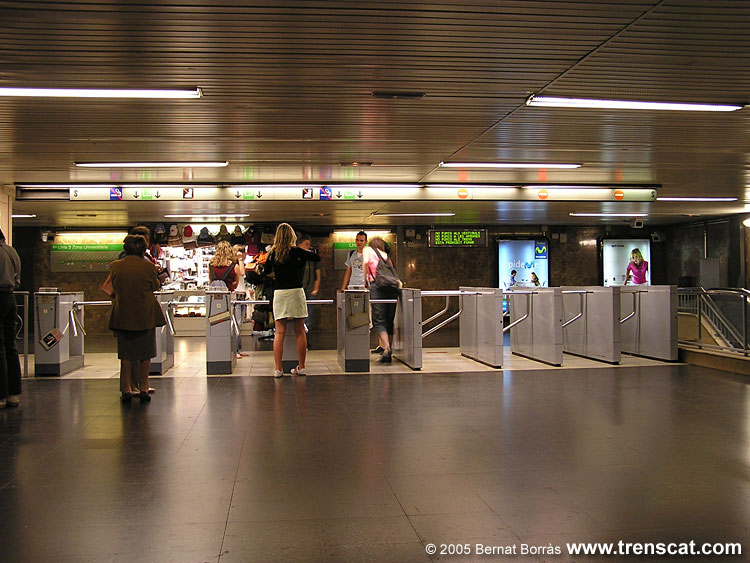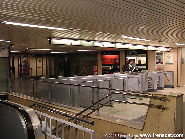 l'estació, dotat de taquilles, torniquets de control d'accés a les andanes