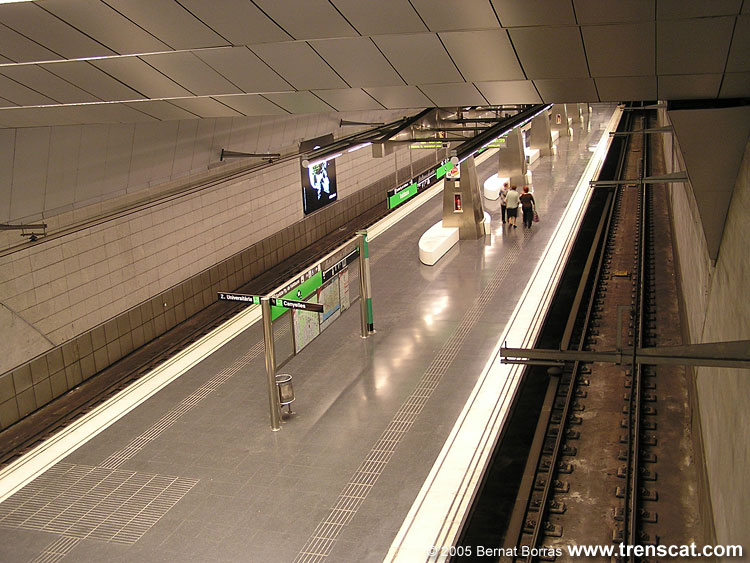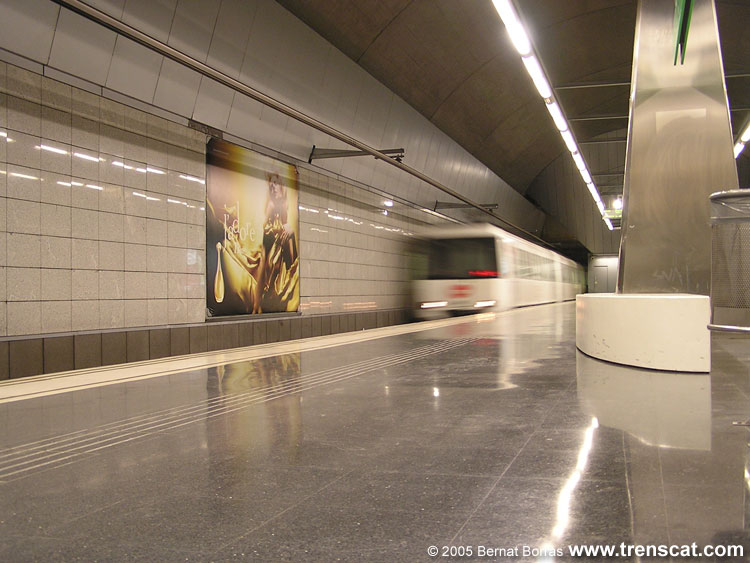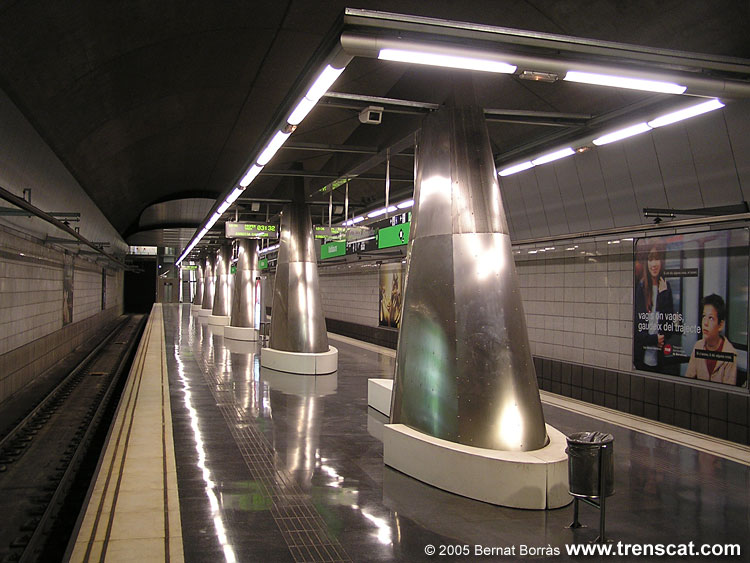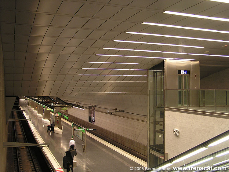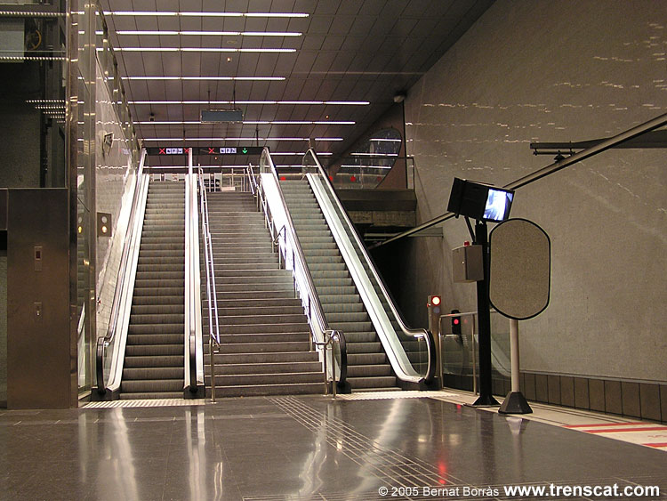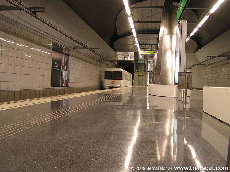 a l'andana. El vestíbul s'esten fins a sobre les vies, situades a un