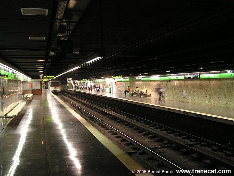 Un tren vist des de l'andana de la via 1 (maig 2005)