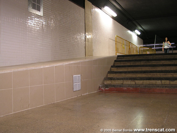 L'accés a l'andana de la via 1, per un lateral (juny 2005)