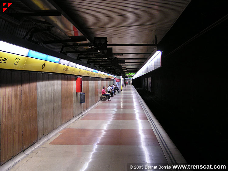 vestíbul de Bailén de la L5. Els trens de la línia L4 circulen per un