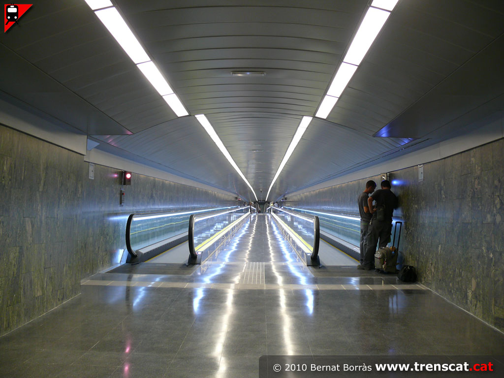 Galeria d'unió amb el passadís dotat de tapissos rodants (octubre 2010) |