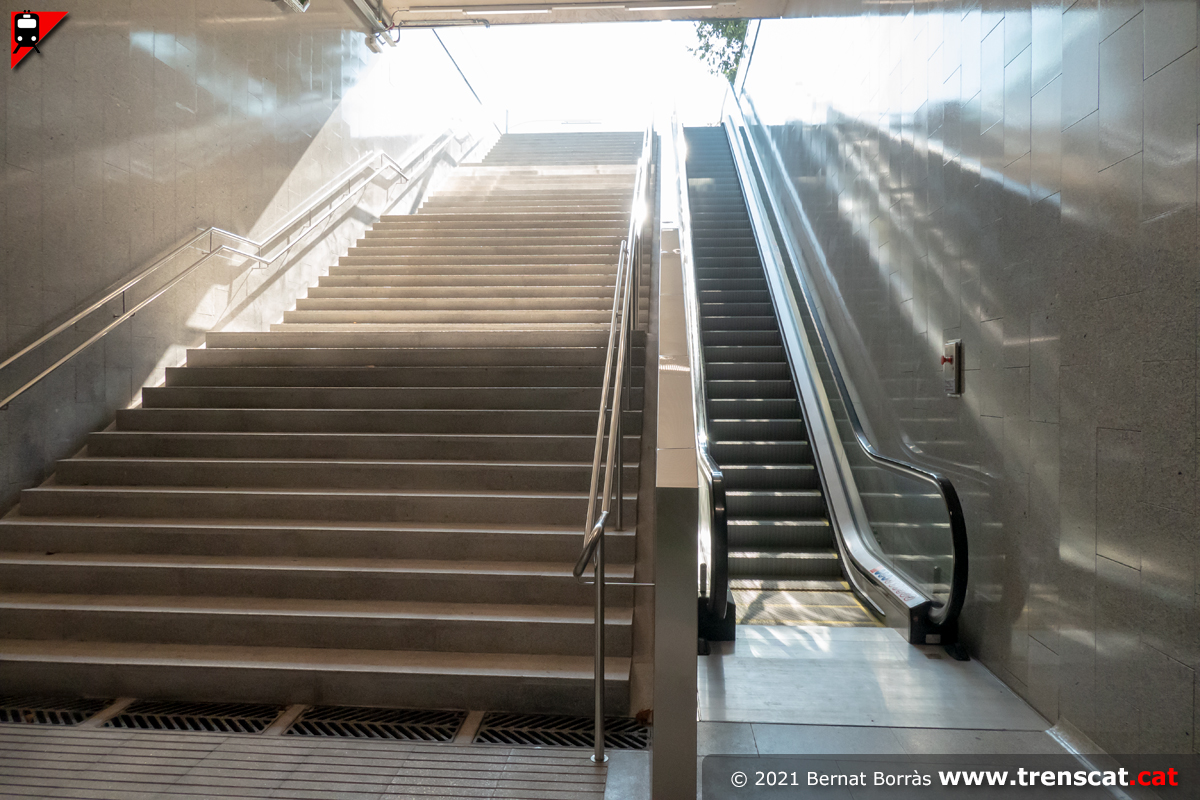 Accés a l'estació pel costat Cementiri de Sants, amb escala mecànica de