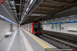Tren procedent de Vall d'Hebron entrant a la nova estació Ernest Lluch