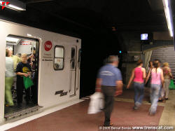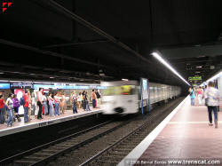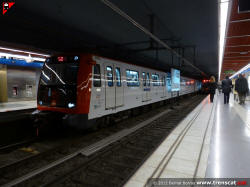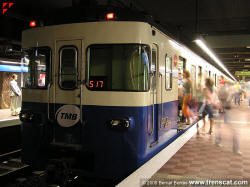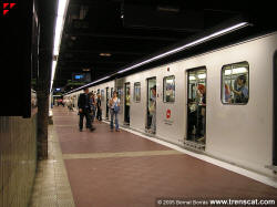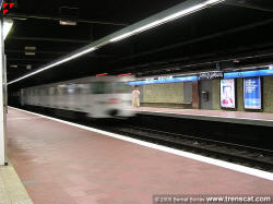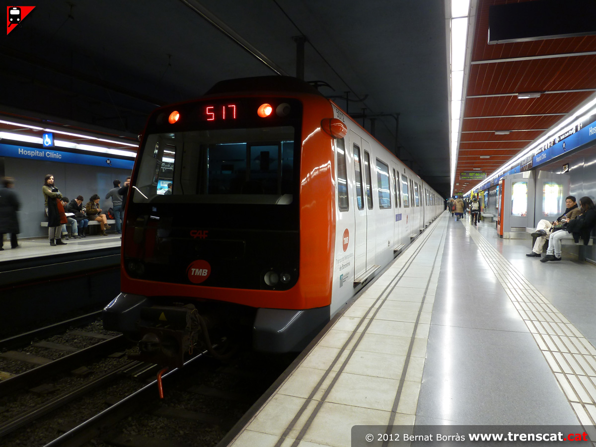 Una unitat 5000 de CAF és a punt de sortir d'Hospital Clínic cap a Vall