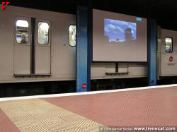 Vista general de l'estació, on destaca la gran pantalla entre vies