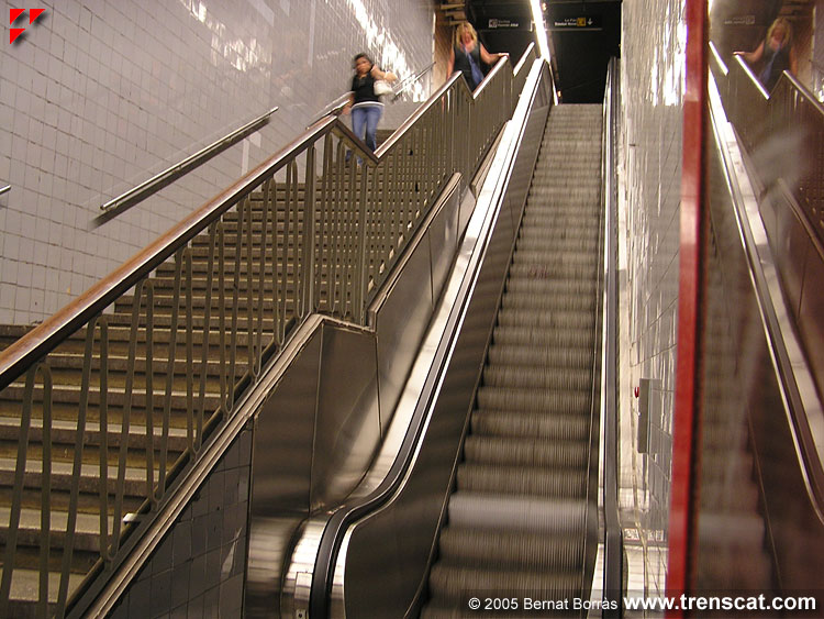 escalinates i escala mecànica que baixa fins al nivell de les vies. A