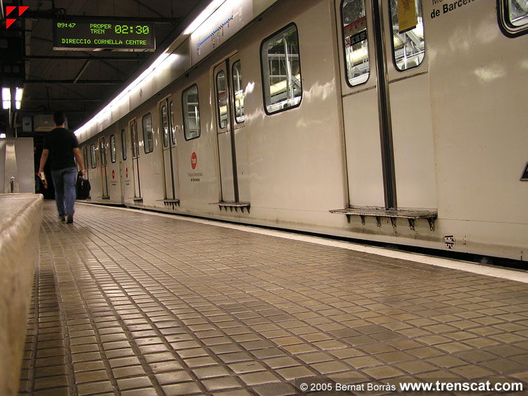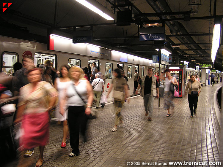 Tren de la línia L5 sortint cap a Virrei Amat (juny 2005)