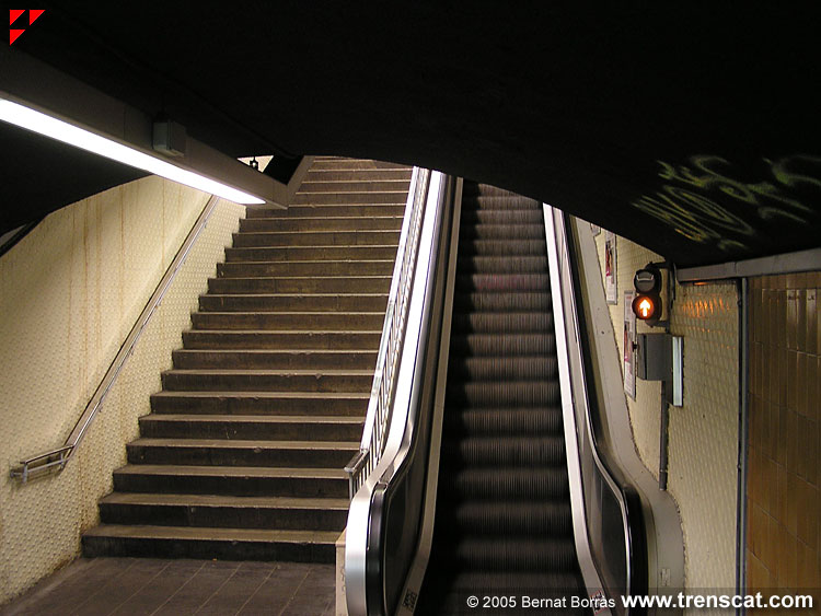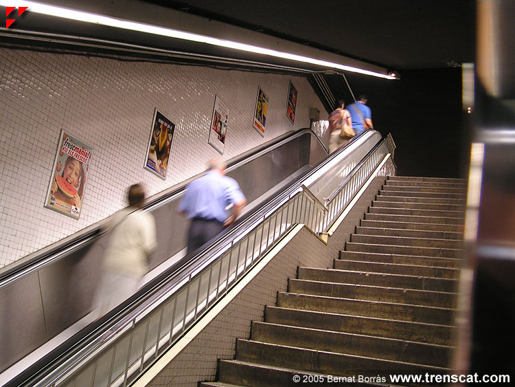 mitjançant escalinates i una escala mecànica (juny 2005)