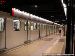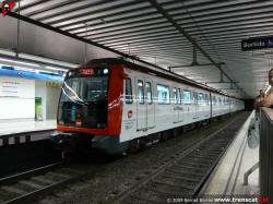 Unitat 5000 del metro sortint cap a Horta (juliol 2009) |