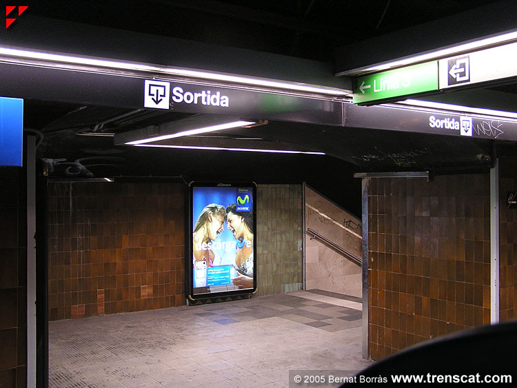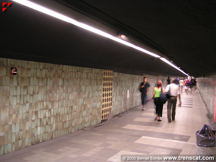 de la via 2 i a la dreta passadís que duu a l'estació de la L3 (juny 2005) |