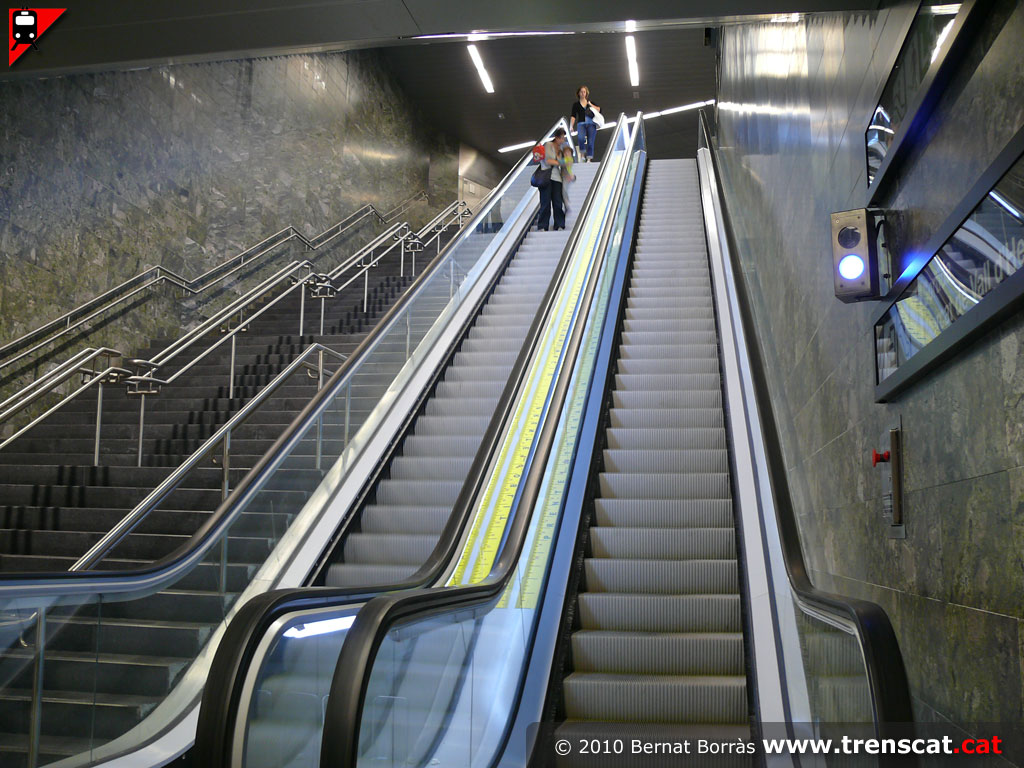 Conjunt d'escales mecàniques, fixes i ascensor per baixar a les andanes