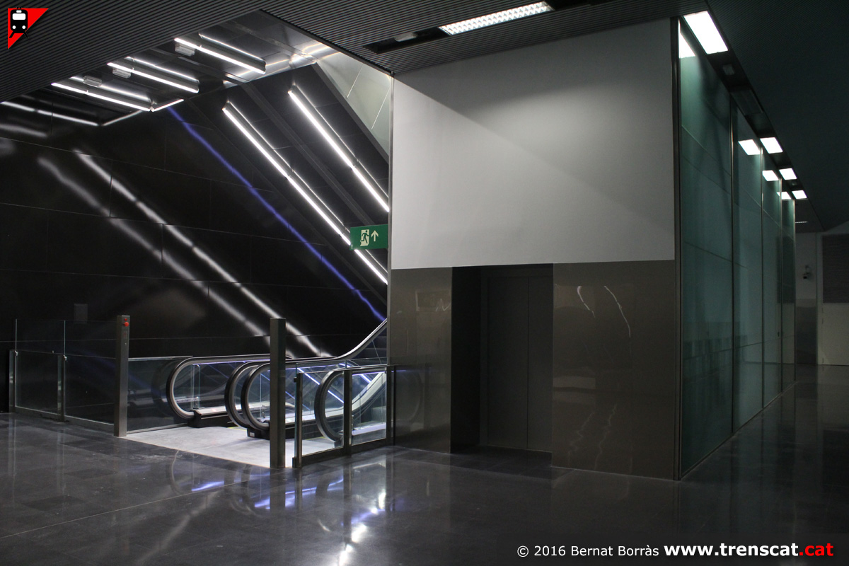 amb un tram més d'escales mecàniques. Hi ha 2 ascensors per a