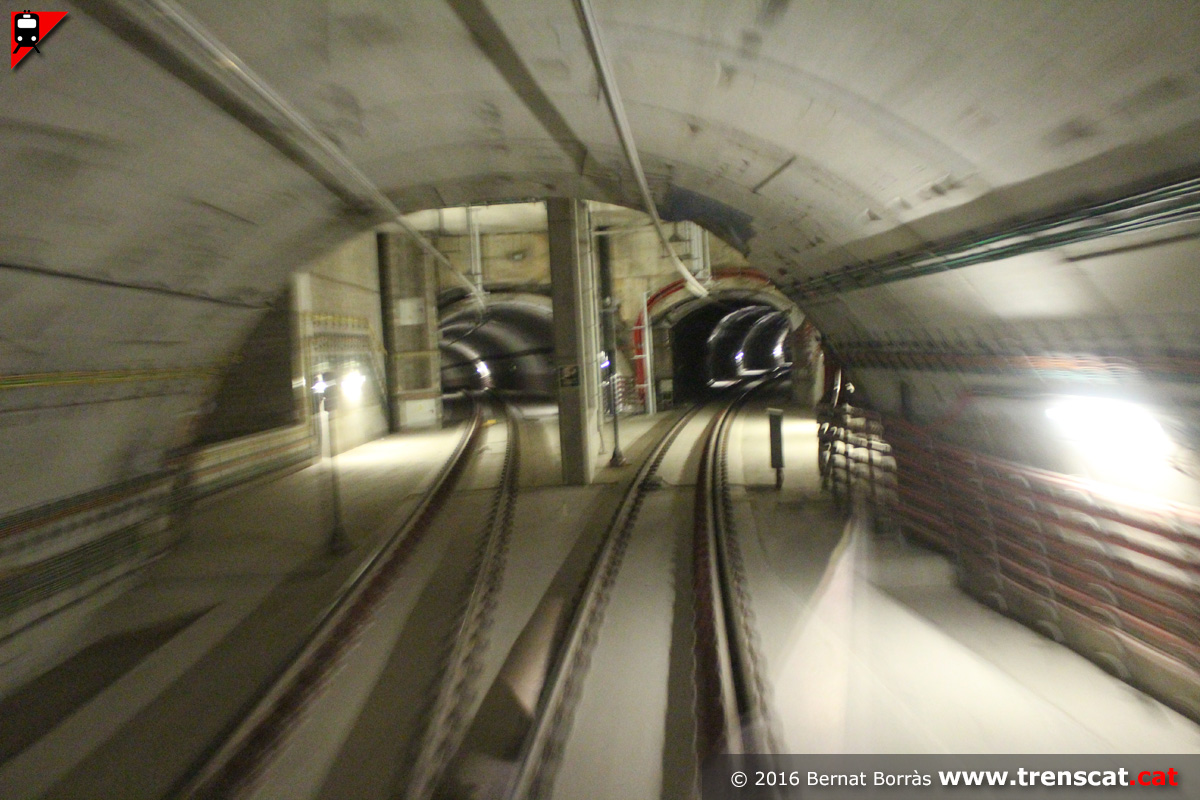 túnel de doble pis superposat per on discorren els trens. Hi ha
