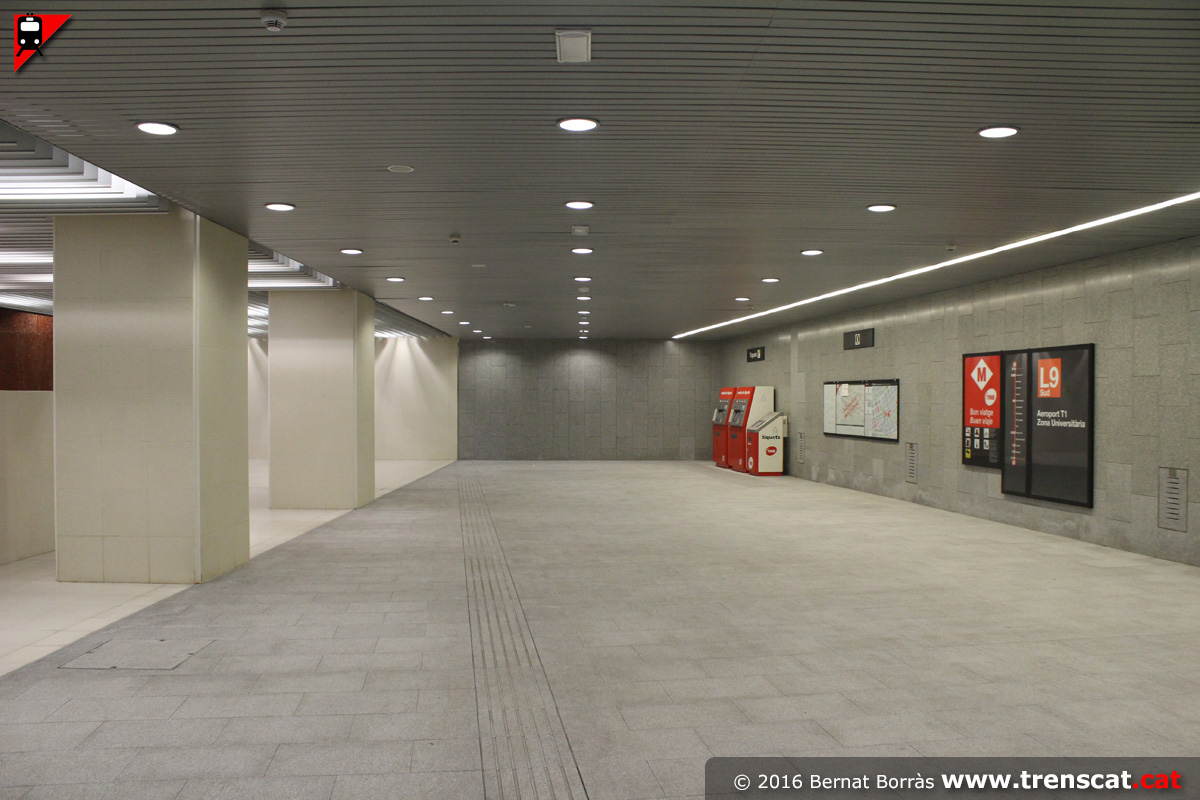 Vista general de l'ampli vestíbul de Cèntric de la L9 sud (febrer 2016) |