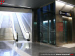 Detall del mateix accés a l'estació, amb l'escala mecànica, la fixa i