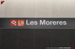 Detall de la senyalètica de l'estació Les Moreres de la L9 sud