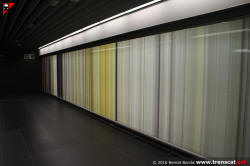 Un dels panells retroil·luminats des del passadís d'enllaç amb la via 1 (febrer 2016) |