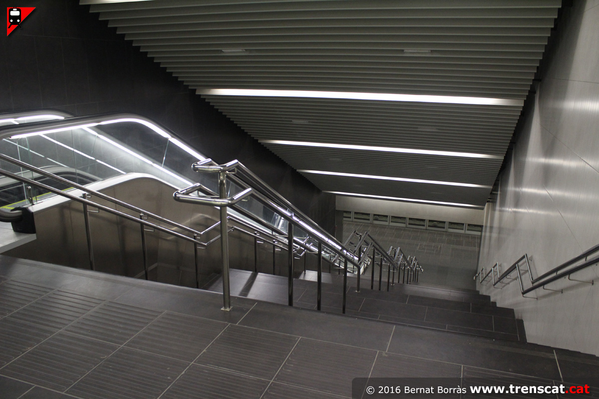 Una escala mecànica i escales fixes enllacen el vestíbul i el carrer (febrer 2016) |