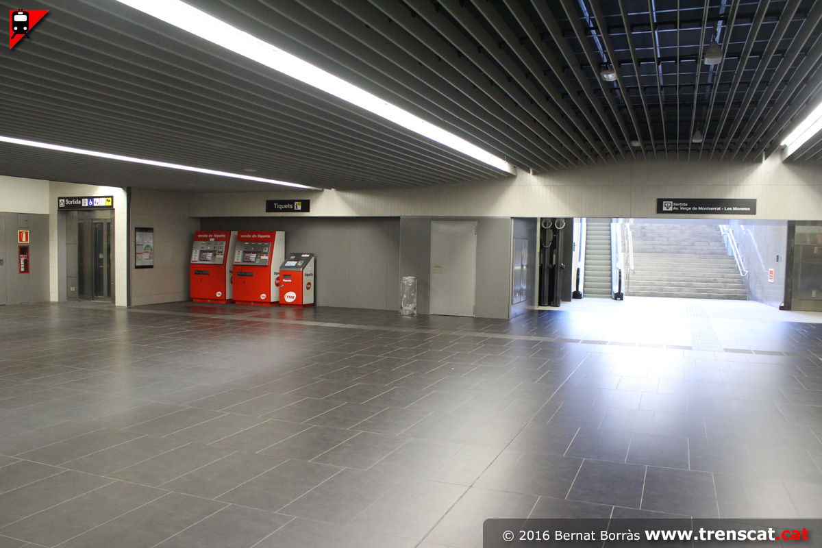 Vestíbul de l'estació de les Moreres, amb l'ascensor i les màquines de