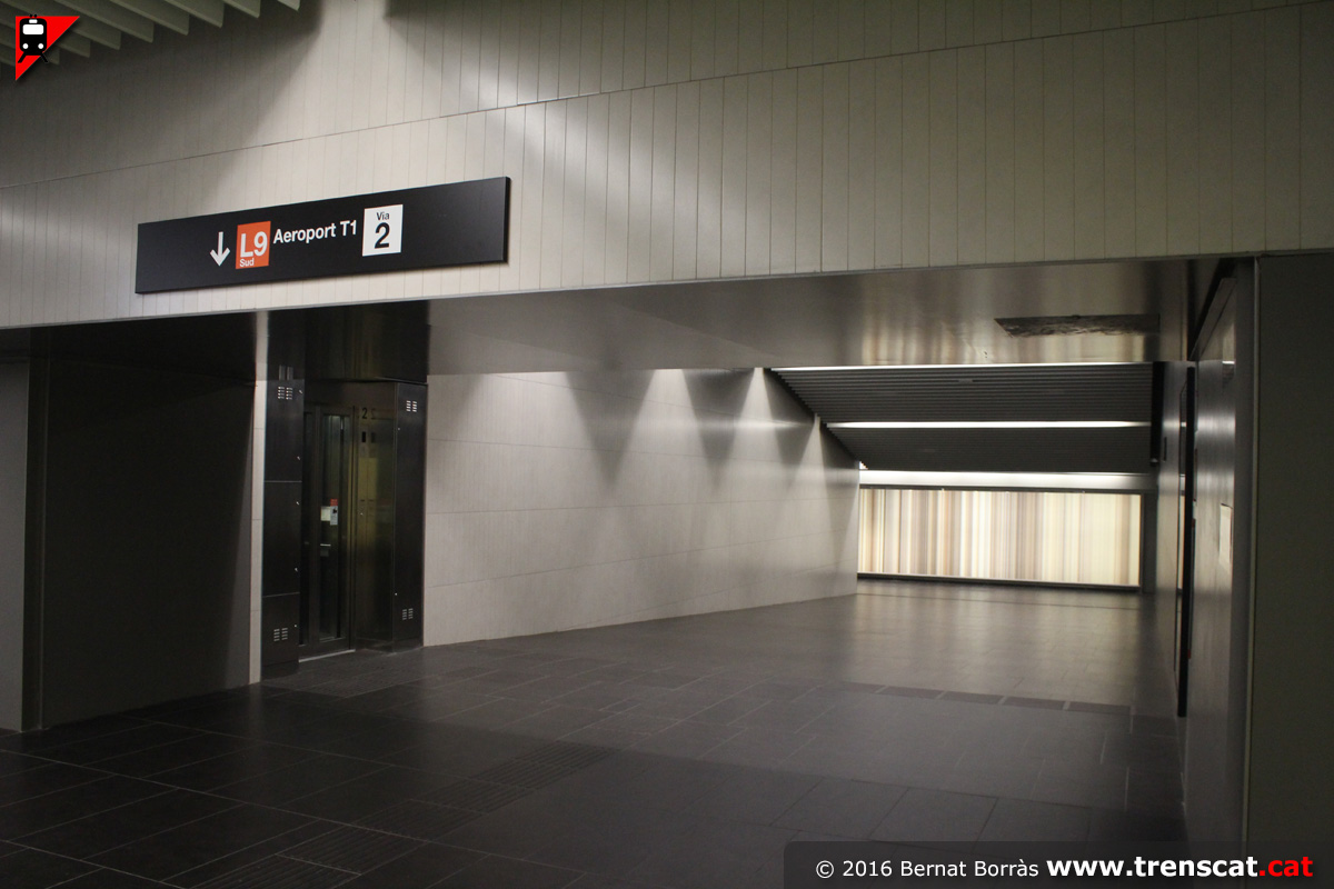 Andana de la via 2, arribada de les escales i ascensor andana- vestíbul (febrer 2016) |