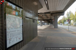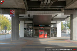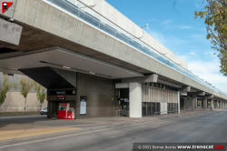 Vista general de l'estació Ecoparc des del carrer A, calçada costat mar (desembre 2021) |