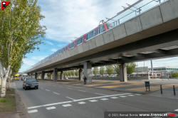 Unitat sèrie 9000 d'Alstom arribant a Ecoparc vista des del carrer (desembre 2021) |