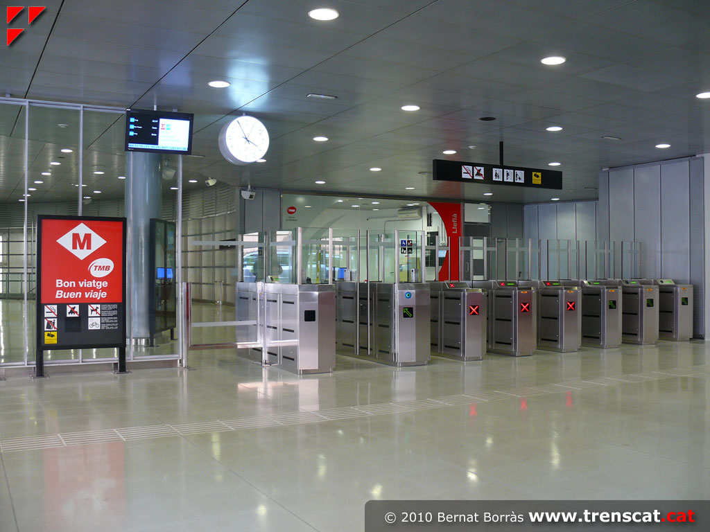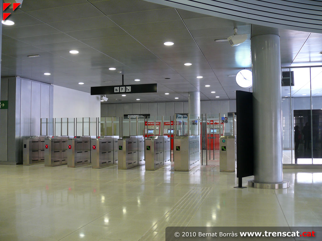 Les barreres tarifàries i el centre de control de l'estació (abril 2010) |