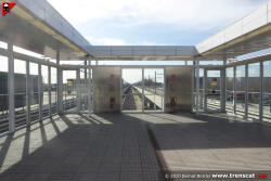 Vista un cop passada la línia de peatge, amb les escales per pujar a