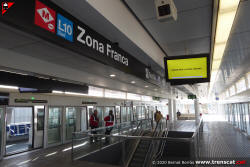 A l'estació de metro de Zona Franca es pot veure el tren estacionat des