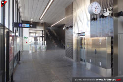 l’estació. Del vestíbul en surten dos grups d’escales fixes que