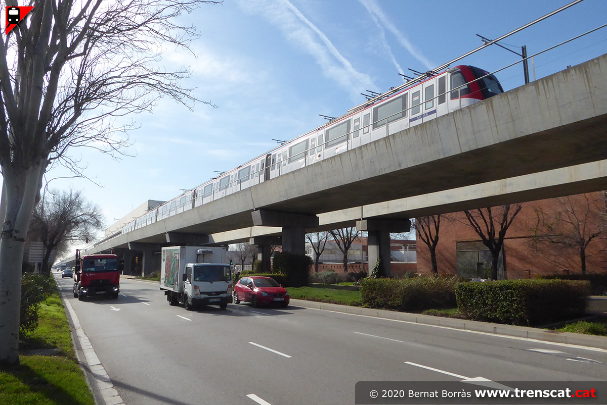 El metro circula per sobre del trànsit de camions intens del carrer A,