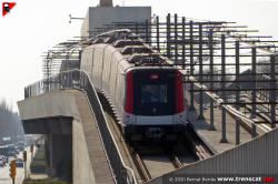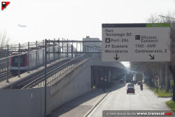 El metro circulant pel viaducte fins a l'estació de Zona Franca on