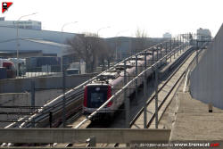 Tren 9000 de TMB a la via 1 de Zona Franca fent temps per fer un nou
