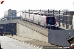 Tren Alstom de la sèrie 9000 en conducció automàtica baixant cap al