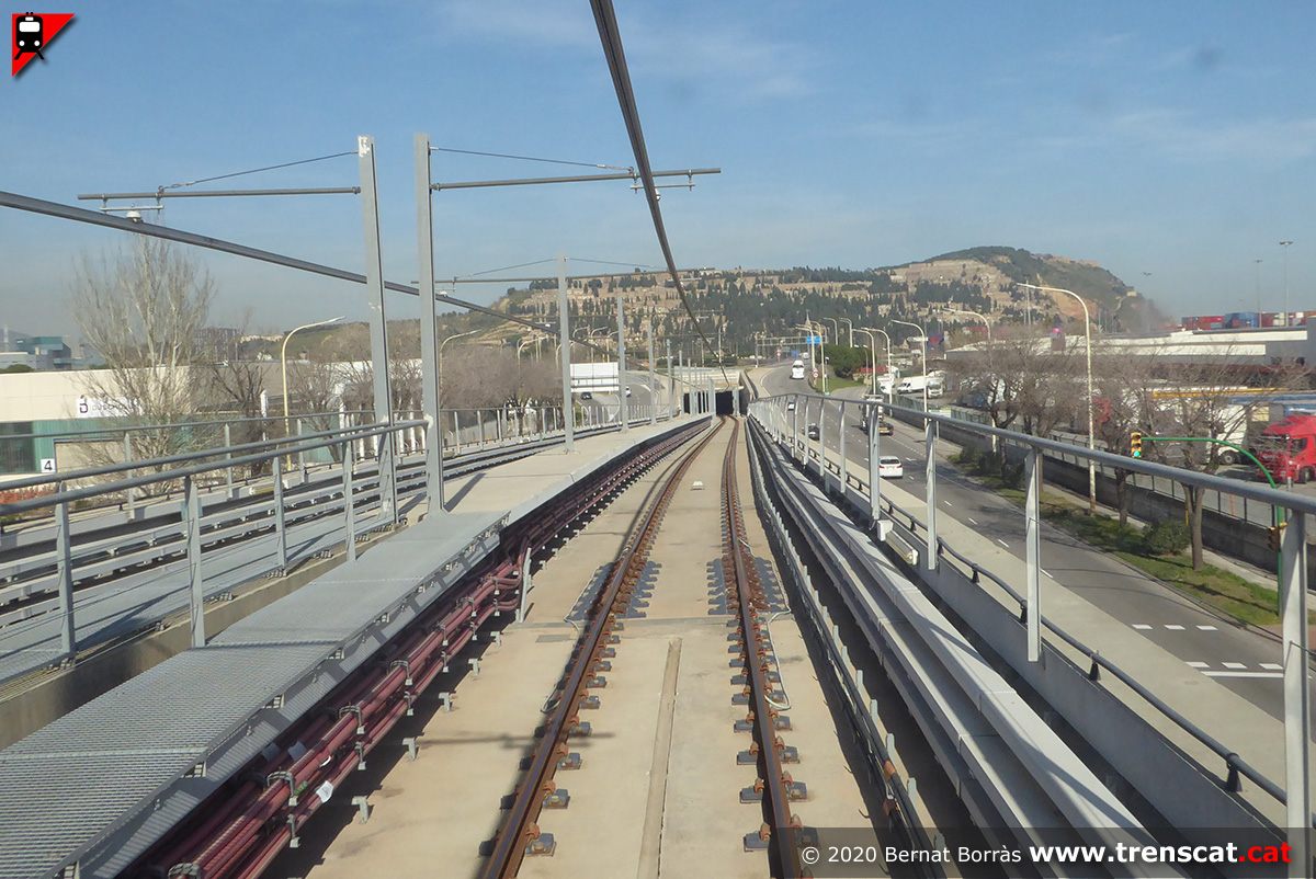 Vista a bord d'un 9000 a punt de sortir de Zona Franca cap a Collblanc