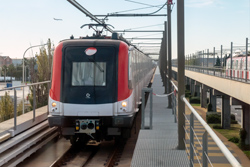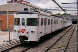 pel viaducte de la Zona Franca. El material mòbil està format per 3 trens de 2
