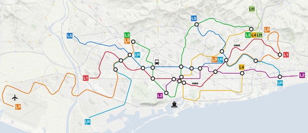 a Can Zam (L9 nord), d'Aeroport T1 a Zona Universitària (L9 sud), de La Sagrera a Gorg (L10