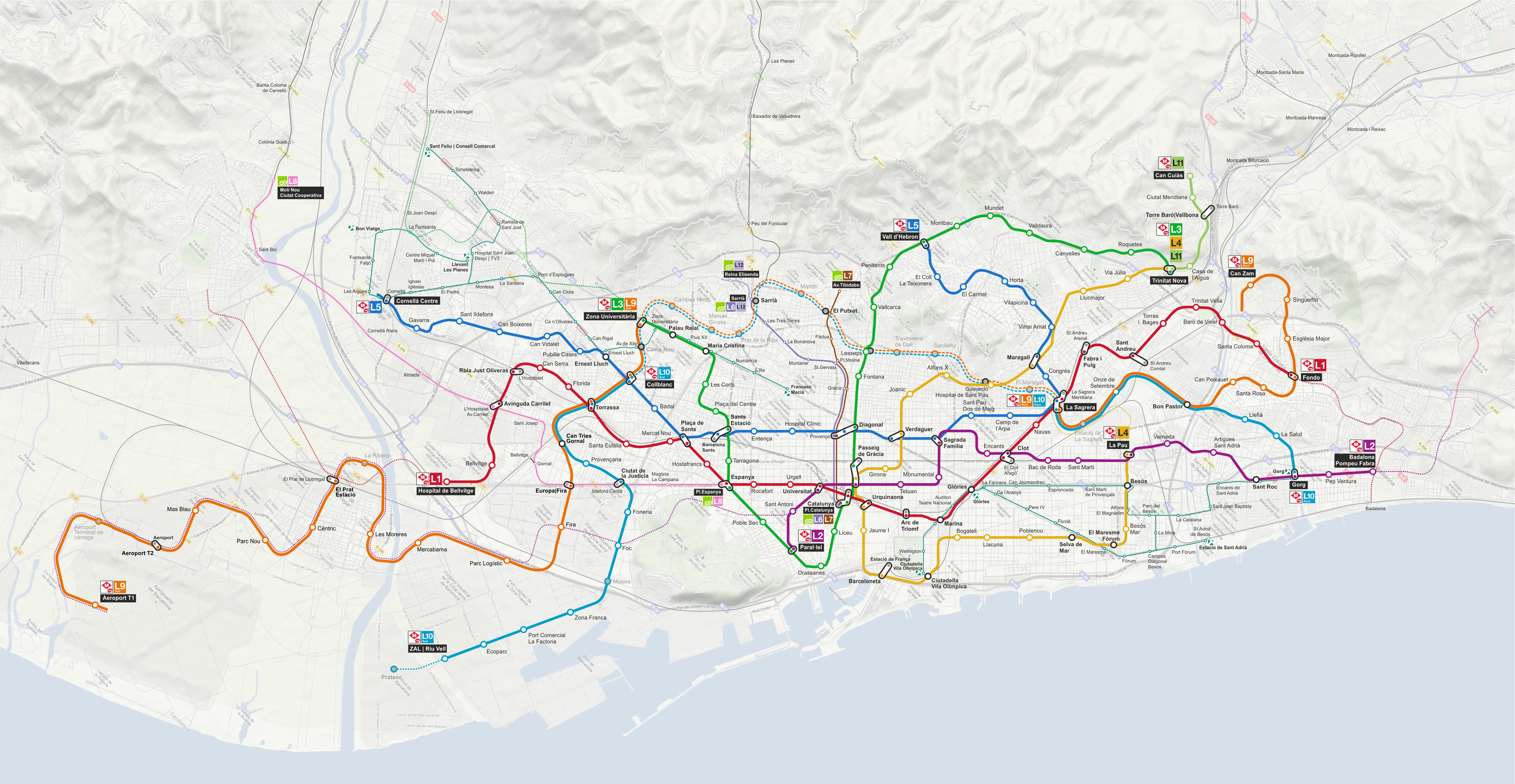 (L6, L7, L8 i L12). La xarxa del Ferrocarril Metropolità de Barcelona de TMB té 163 estacions i
